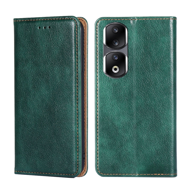 Estuche de Cuero Magnético para Honor 90 Pro 5G Color Sólido Aceite Brillante (Verde)