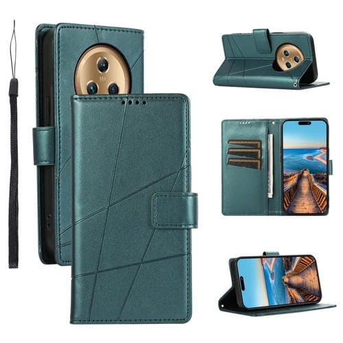 Funda para Honor Magic5 con Línea en Relieve y Textura de Cuero Genuino (Verde)