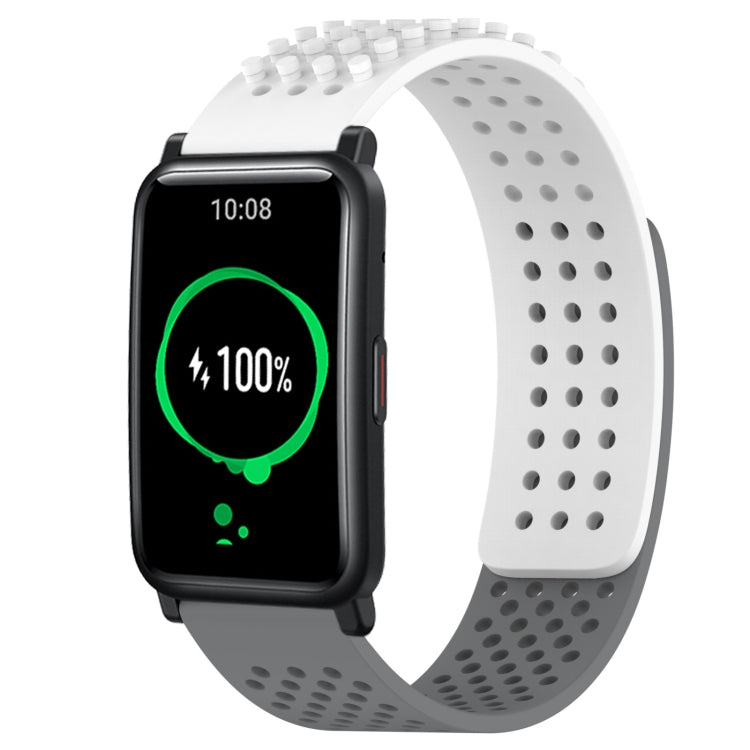 Correa de Silicona para Honor Watch Es con Puntos 3D Transpirables y Orificios 20mm (Blanco + Gris)