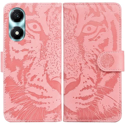 Funda para Honor X5 Plus y Play 40C de Cuero con Tapa y Patrón en Relieve de Tigre (Rosa)