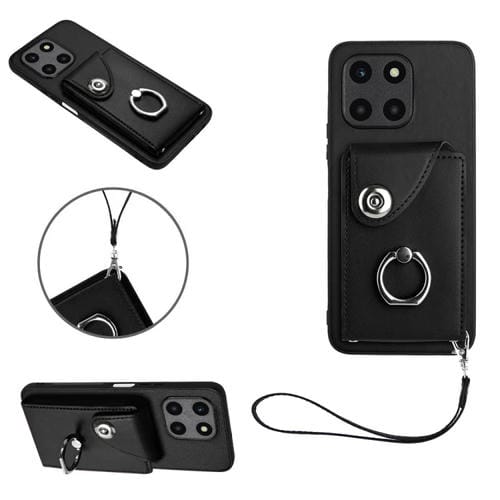 Funda para Honor X6A Global con Organ Card Bag, Ring Holder y Cordón (Negro)