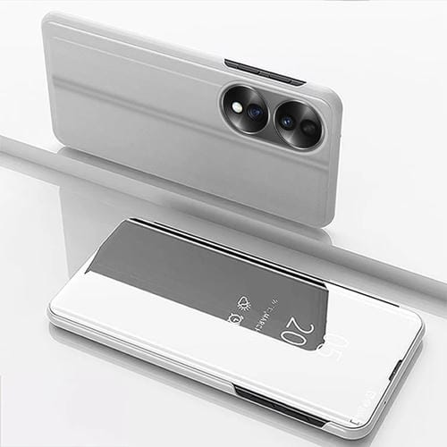 Funda para Honor X7B de Cuero con Tapa Horizontal, Espejo y Soporte (Plateado)