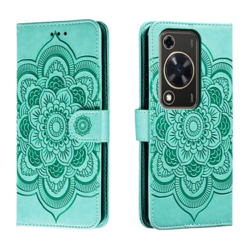 Funda de Cuero Huawei Enjoy 70 con Patrón en Relieve Sun Mandala (Verde)