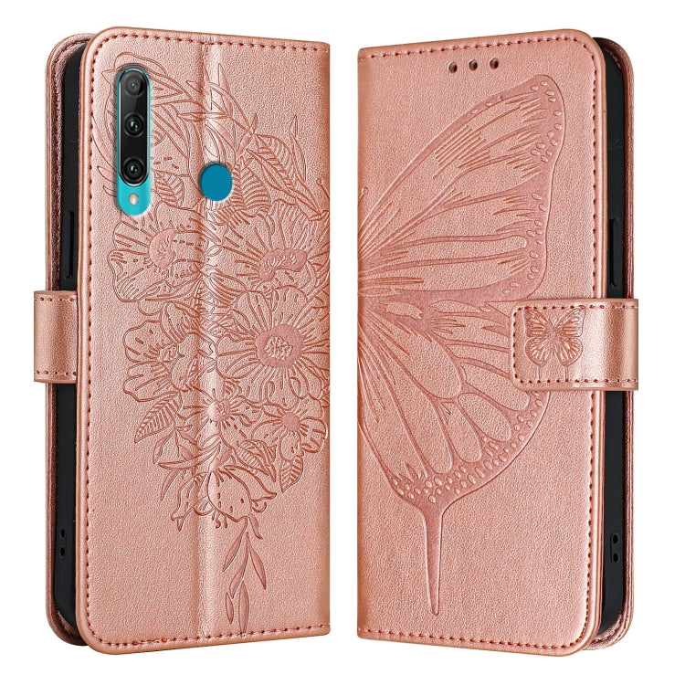 Funda de Cuero para Huawei Enjoy 9S P Smart P Smart+ (2019) con Mariposa en Relieve (Oro Rosa)