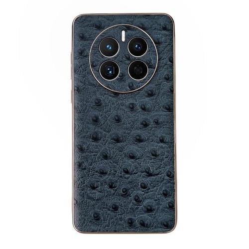 Funda para Huawei Mate 50 con Revestimiento Nano y Textura de Avestruz de Cuero Genuino (Azul)
