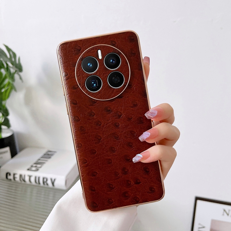 Funda para Huawei Mate 50 con Revestimiento Nano y Textura de Avestruz de Cuero Genuino (Café)