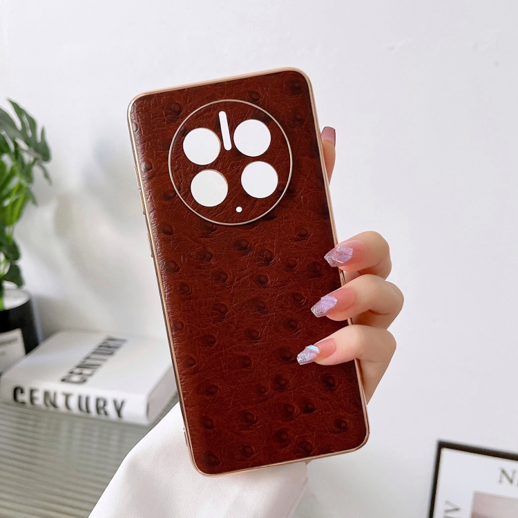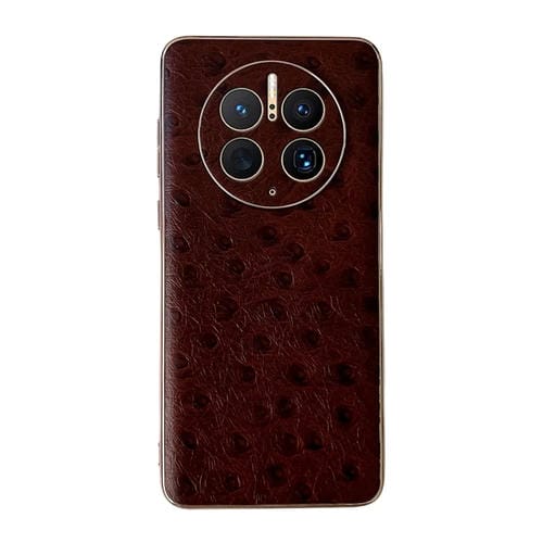 Estuche para Huawei Mate 50 Pro con Nanochapado y Textura de Avestruz de Cuero Genuino (Café)