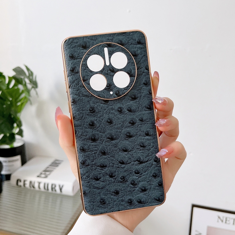Estuche para Huawei Mate 50 Pro Cuero Genuino Textura Avestruz Nano Plating (Azul)