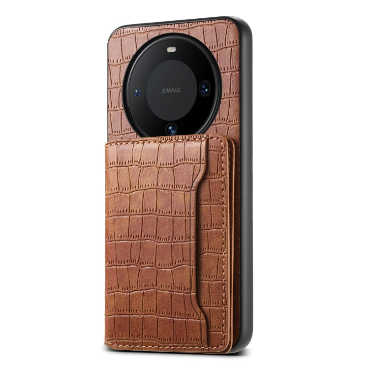 Funda para Huawei Mate 60 con Diseño de Bolsa para Tarjetas y Textura de Cocodrilo (Marrón)
