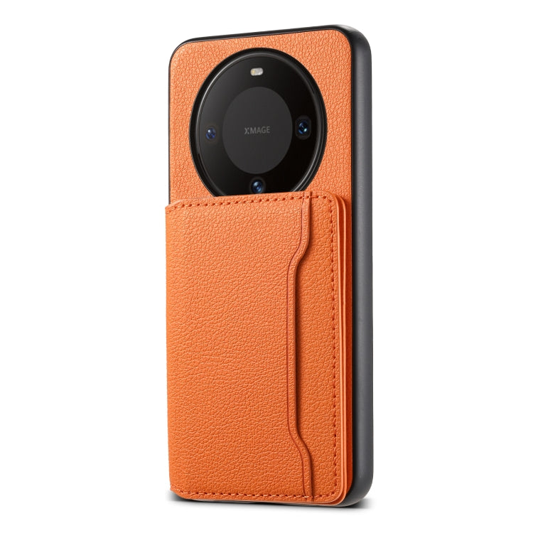 Funda para Huawei Mate 60 con Bolsa para Tarjetas y Textura de Pantorrilla (Naranja)