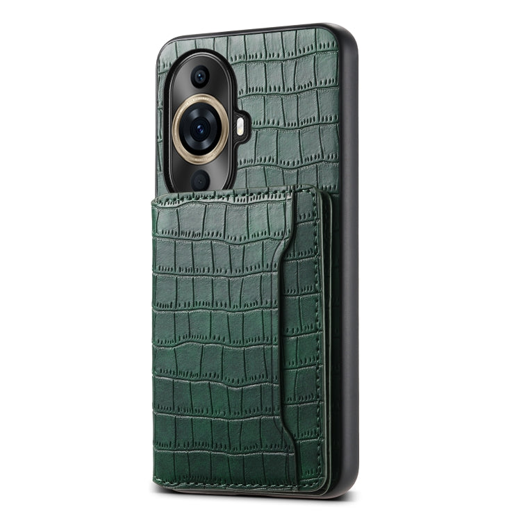 Funda para Huawei Nova 11 Pro con Diseño Bolsa para Tarjetas y Textura de Cocodrilo (Verde)