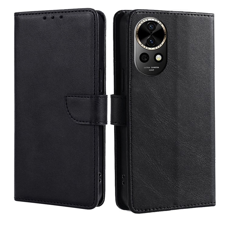 Funda para Huawei Nova 12 5G de Cuero con Tapa, Hebilla y Textura de Becerro (Negro)