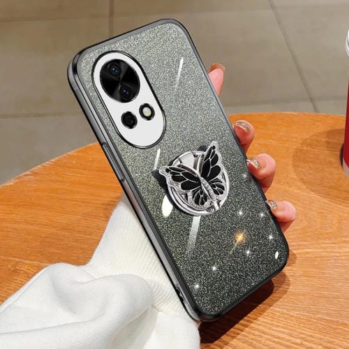 - 1x Funda TPU Huawei Nova 12 Pro con Soporte de Mariposa y Brillo Degradado (Negro)