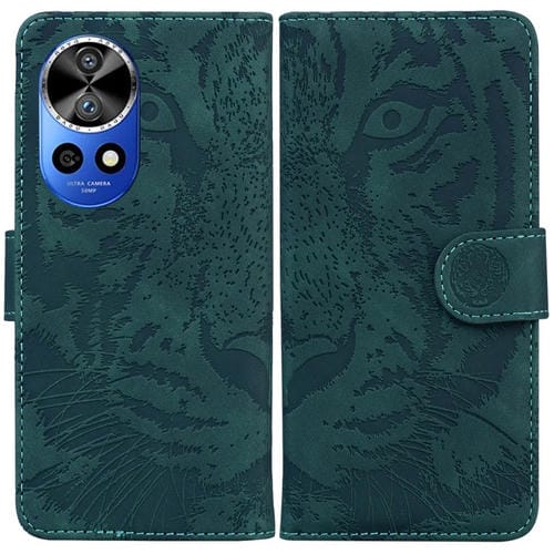 Estuche para Huawei Nova 12 Pro y Nova 12 Ultra con Estampado Tiger en Relieve de Cuero con Tapa (Verde)