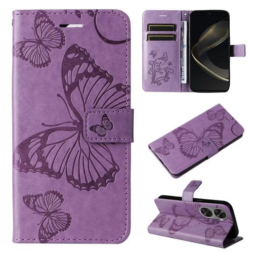 - 1x Funda para Huawei Nova 12 Se y Nova 11 Se de Cuero con Tapa y Patrón Mariposa 3D (Púrpura)