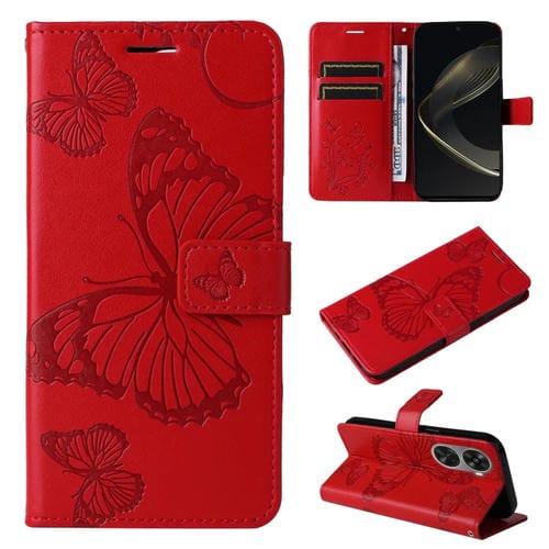 - 1x Funda para Huawei Nova 12 Se y Nova 11 Se de Cuero con Tapa y Patrón Mariposa 3D (Rojo)