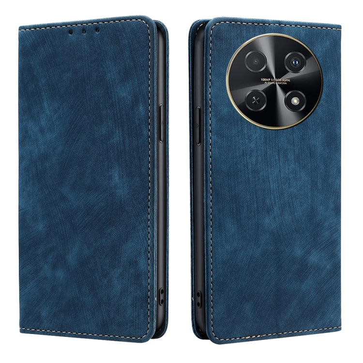 Estuche para Huawei Nova 12I 4G de Cuero Magnético con Cepillo Antirrobo RFID (Azul)