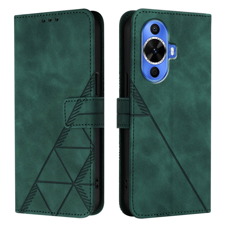 Funda para Huawei Nova 12S 4G Global Crossbody de Cuero con Tapa en Relieve 3D (Verde Oscuro)