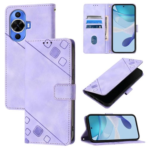 Funda de Cuero para Huawei Nova 12S con Relieve Global Skin Feel (Púrpura Claro)