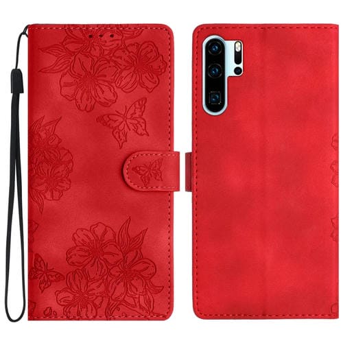 - 1x Funda para Huawei P30 Pro Cherry Blossom Butterfly Skin Feel de PU en Relieve (Rojo)