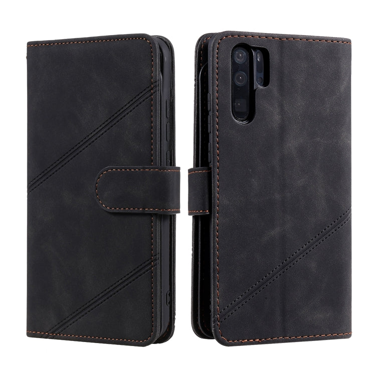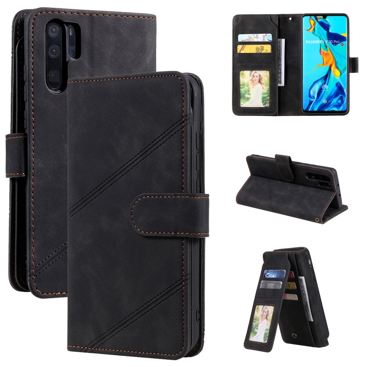 Para HUAWEI P30 PRO PIEL Siente la funda de cuero Horizontal Flip PU con soporte y tragamonedas de tarjetas múltiples y billetera y laminador y marco de fotos (negro)