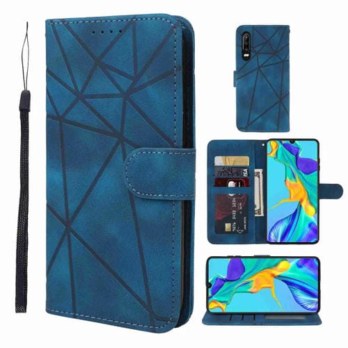 - 1x Funda de Cuero para Huawei P30 Skin Feel con Líneas Geométricas (Azul)