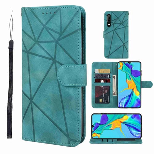 • 1x Funda de Cuero para Huawei P30 Skin Feel con Líneas Geométricas (Verde)