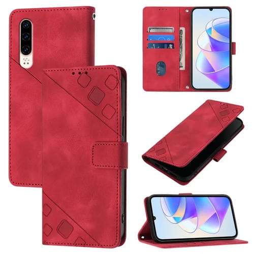 Funda de Cuero Skin Feel para Huawei P30 en Relieve (Rojo)