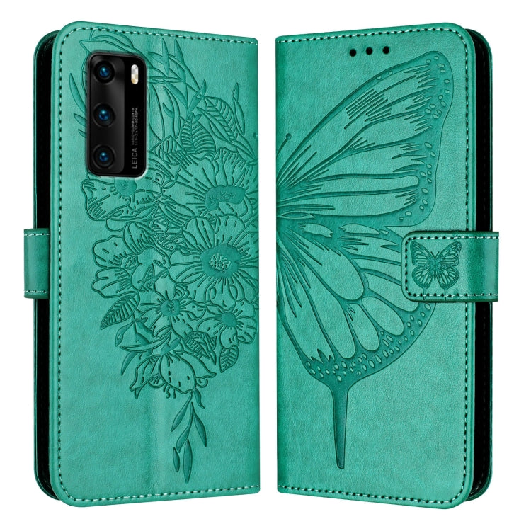 Funda de Cuero para Huawei P40 con Mariposa en Relieve (Verde)