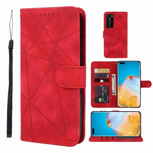 Funda de Cuero para Huawei P40 Pro con Líneas Geométricas (Rojo)