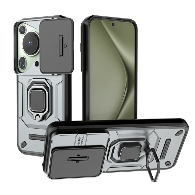 Funda para Huawei P70 Art 5G con Sliding Camshield, TPU + PC, Soporte, a Prueba de Golpes (Gris)