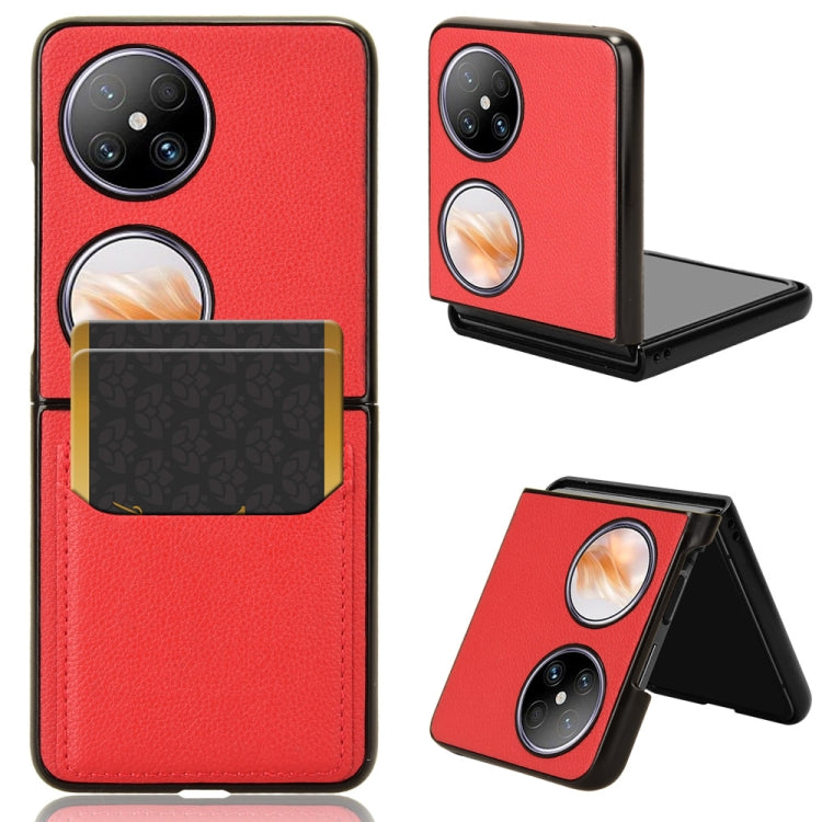 Funda para Huawei Pocket 2 con Ranuras para Tarjetas y Textura Litchi (Rojo)