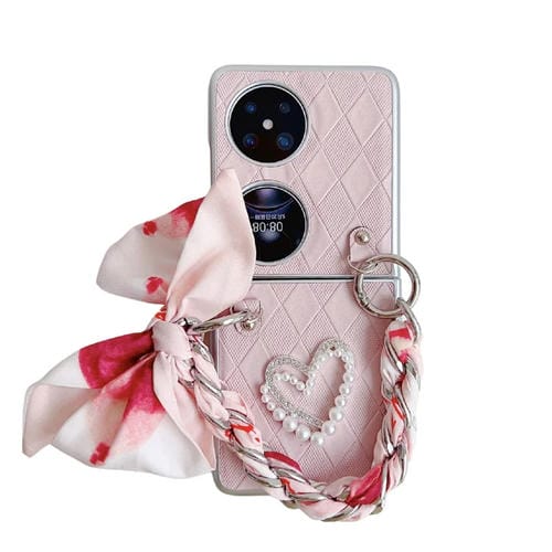 Funda para Huawei Pocket 2 con Textura de Cuero Rombo, Bufanda y Pulsera en Forma de Corazón (Rosa)