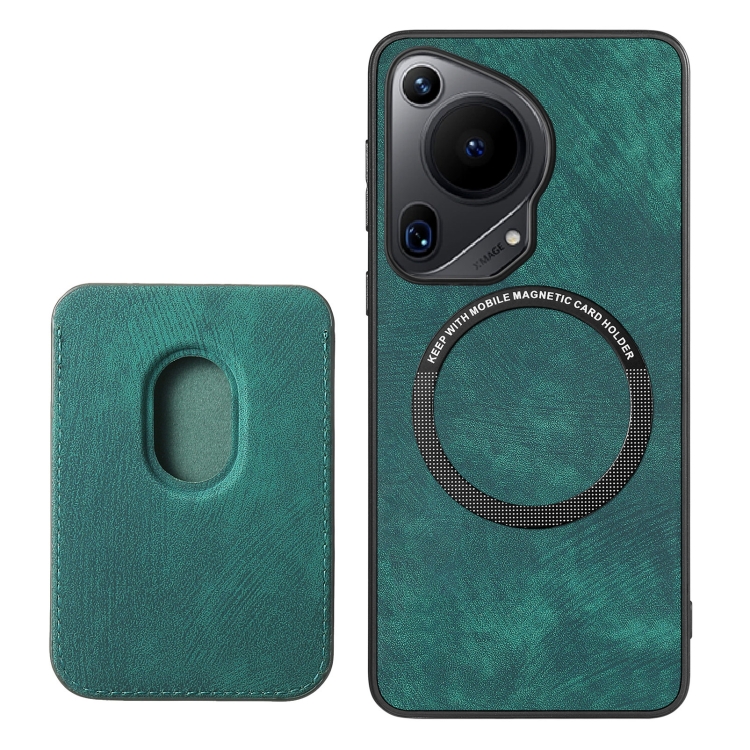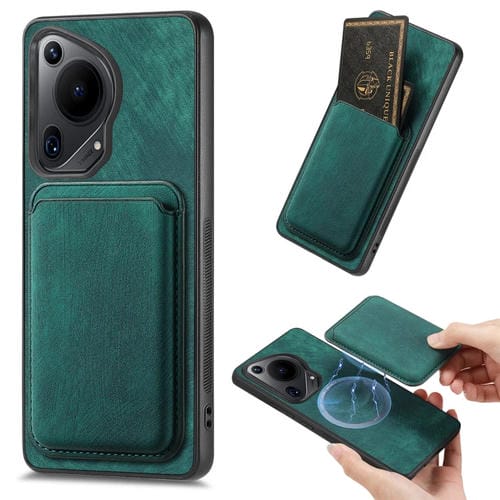 - 1x Funda Magnética para Huawei Pura 70 con Bolsa de Tarjeta de Cuero Ultra Retro (Verde)
