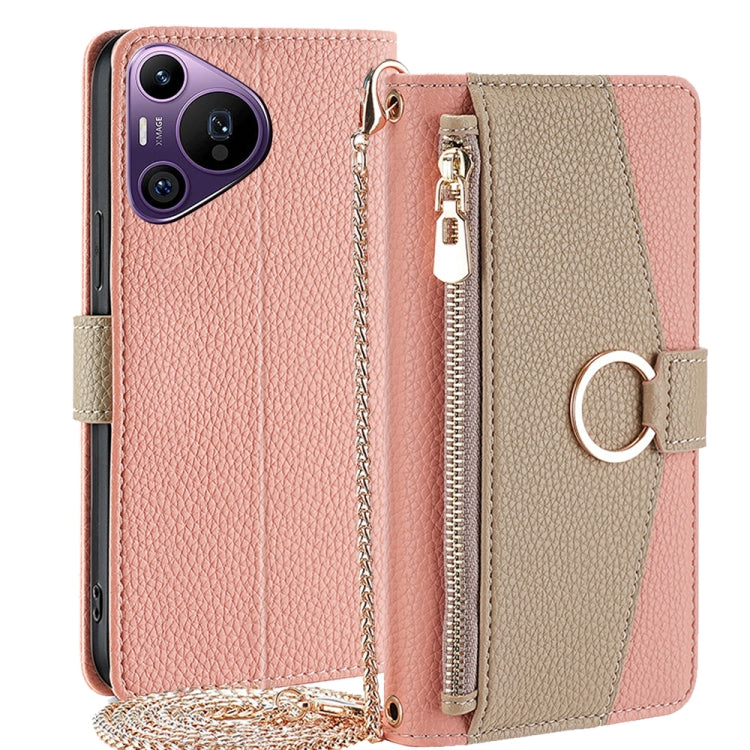 Funda para Huawei Pura 70 Pro y 70 Pro + 5G de Cuero con Textura Litchi Cruzada (Rosa)