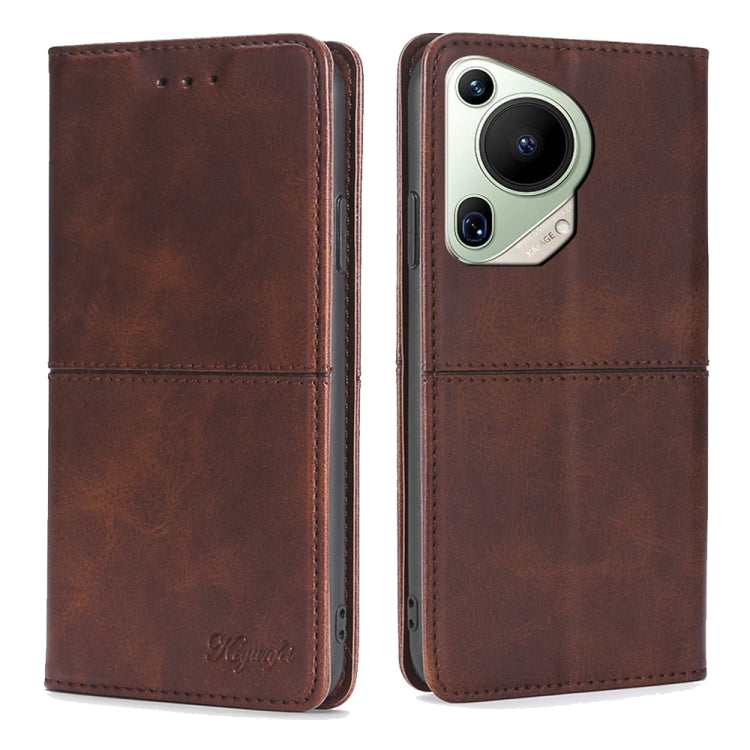 Funda para Huawei Pura 70 Ultra 5G de Cuero Magnético con Textura de Vaca (Marrón Oscuro)