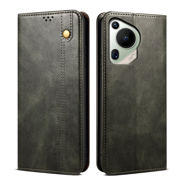 Funda de Cuero Huawei Pura 70 Ultra Oil Wax Crazy Horse Texture para Teléfono (Verde)