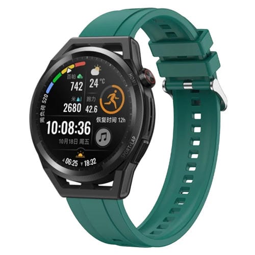 Correa de Reloj para Huawei Watch 3 Pro New y GT Runner Patrón de Neumático Silicona con Hebilla Plateada (Verde Oscuro)