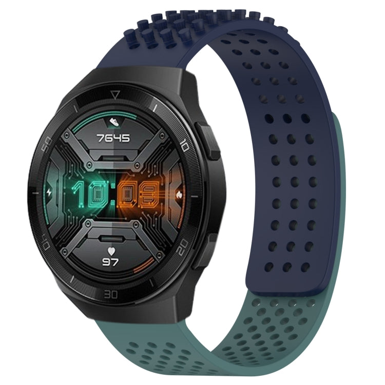 Correa de Silicona para Huawei Watch GT 2E con Puntos 3D Transpirables y Orificios 22mm (Azul Medianoche + Verde Oliva)