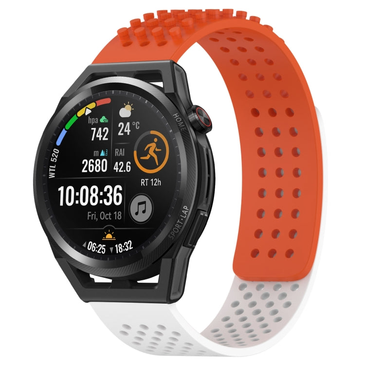 Correa de Silicona para Huawei Watch GT Runner 22mm con Puntos 3D Transpirables (Naranja + Blanco)