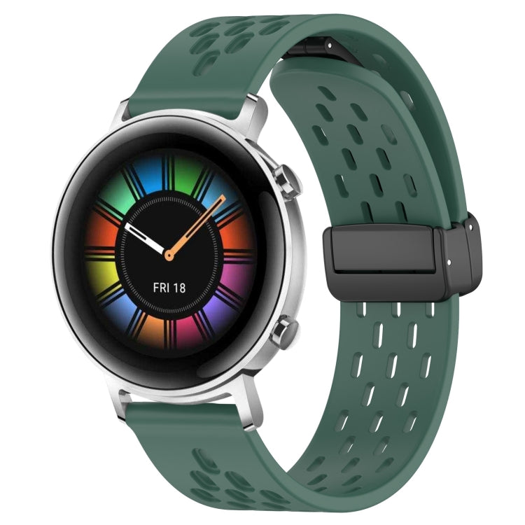 Para Huawei Watch Gt2 42mm 20mm Correa de Reloj de Silicona con Cierre Magnético Plegable (Verde Oscuro)
