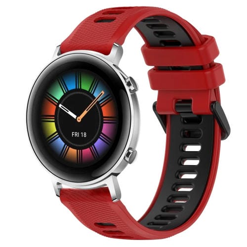 Correa para Huawei Watch GT2 42mm 20mm Silicona Deportiva Bicolor (Rojo + Negro)