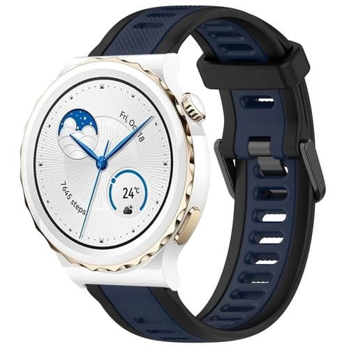 Correa de Silicona para Huawei Watch GT3 Pro 43mm 20mm Texturizada Dos Colores (Azul Medianoche + Negro)
