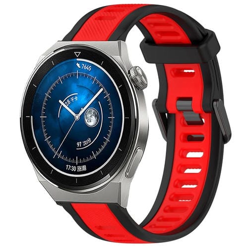 Correa de Silicona para Huawei Watch GT3 Pro 46mm 22mm Texturizada Dos Colores (Rojo + Negro)