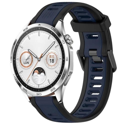Correa de Silicona para Huawei Watch GT4 46mm 22mm Texturizada Dos Colores (Azul Medianoche + Negro)