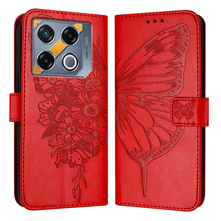 Funda de Cuero para Infinix GT 20 Pro con Mariposa en Relieve (Rojo)