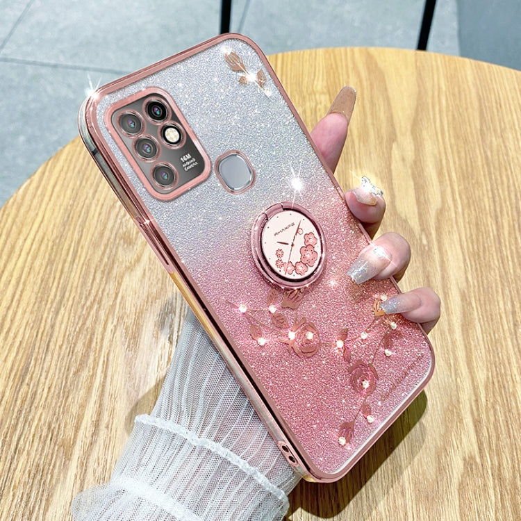 Estuche para Infinix Hot 10 con Anillo de Flor Inmortal y Brillo Degradado (Rosa)