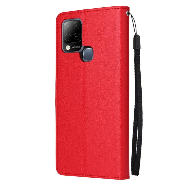 Estuche de Cuero para Infinix Hot 10S con Tapa Horizontal y 3 Ranuras para Tarjetas (Rojo)
