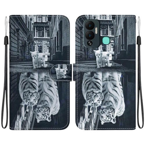 Funda de Cuero para Infinix Hot 12 Play con Dibujo Coloreado y Textura de Cristal (Reflejo de Tigre Gato)