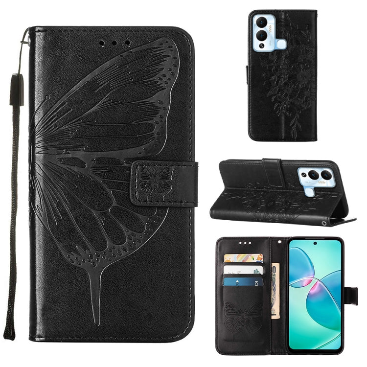 Estuche para Teléfono Infinix Hot 12 Play X6816C Cuero con Tapa de Mariposa en Relieve (Negro)